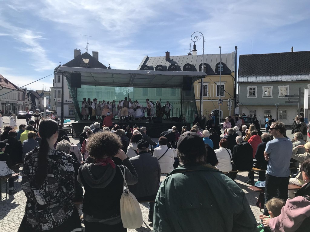 Těšit se můžete na pěvecké vystoupení dětského sboru Liščata a Slunečnice, taneční vystoupení vrchlabského TS OLiver a krkonošského Horalu, který májové odpoledne uzavře.
