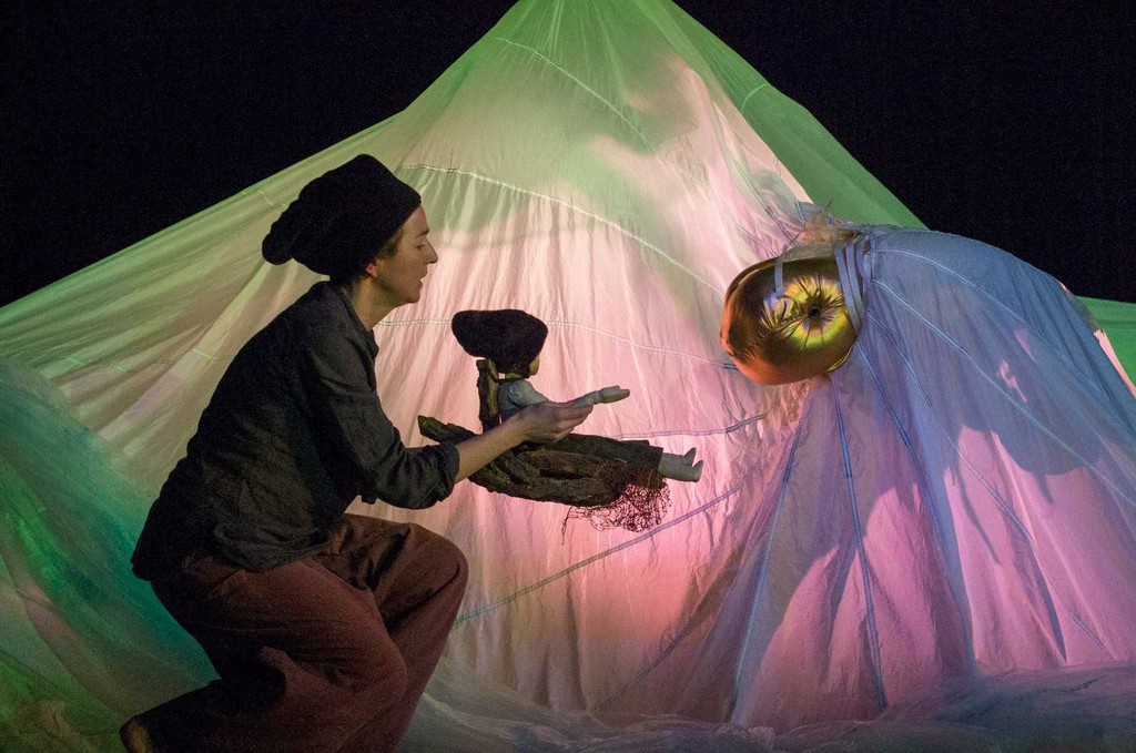 Pohádka plynoucí po mořské hladině za doprovodu bubnů a chřestidel, zpěvů a živé hudby.